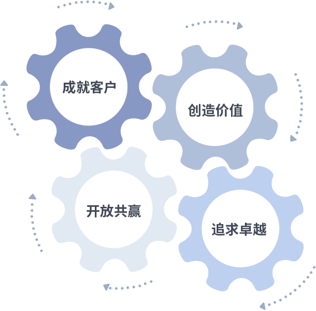 成就客户是一切决策的出发点,创造价值是衡量所有工作的标准,追求卓越是zoty中欧做事做人的态度,开放共赢是zoty中欧的格局也是最终的结果。价值观的齿轮环环相扣,推动着组织里的每个人不断向前。